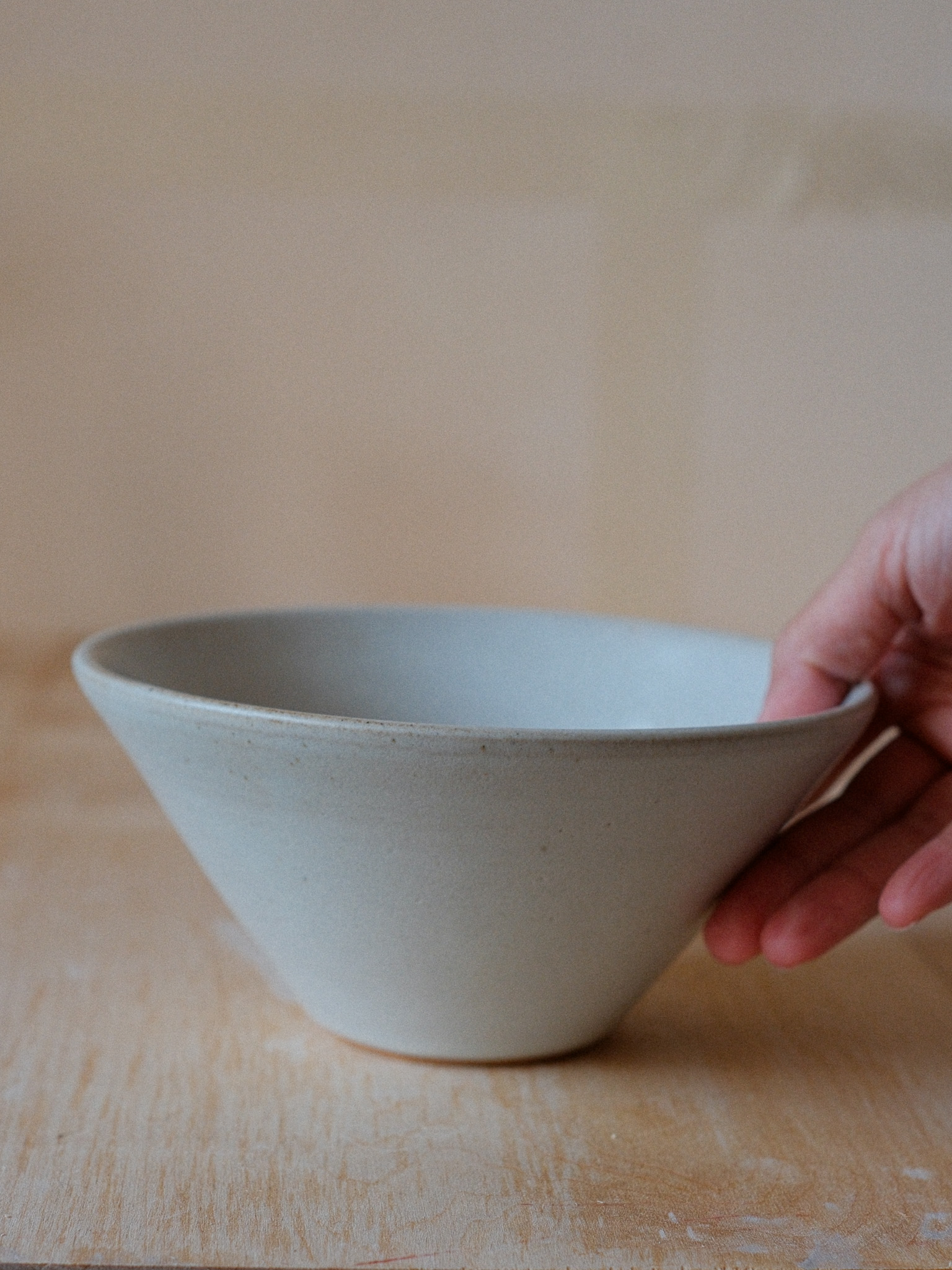 Tall, narrow lines with a subtle Asian influence. A medium bowl that adapts easily — from breakfast to salads, desserts, or a simple fried rice. Clean, versatile, and shaped by hand, with natural variations in every piece.