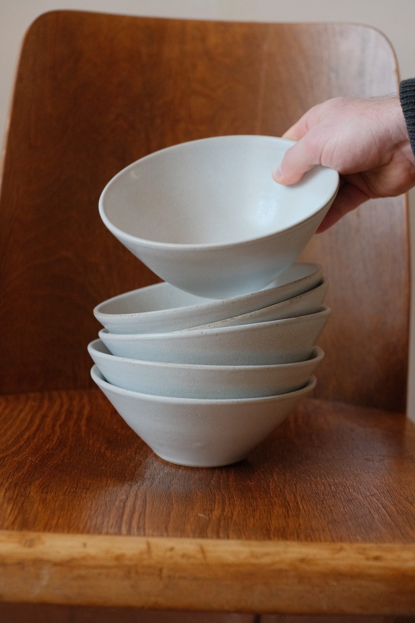 Glaze / Niebla — A soft, neutral white, flecked with delicate, foggy crystals. Subtle yet expressive, it brightens every dish and elevates every drink. A timeless classic that feels effortlessly at home on any table.
